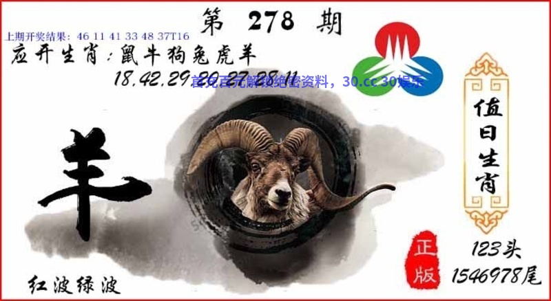 278期:九肖【羊牛鼠猪龙马兔蛇鸡】开:虎28错