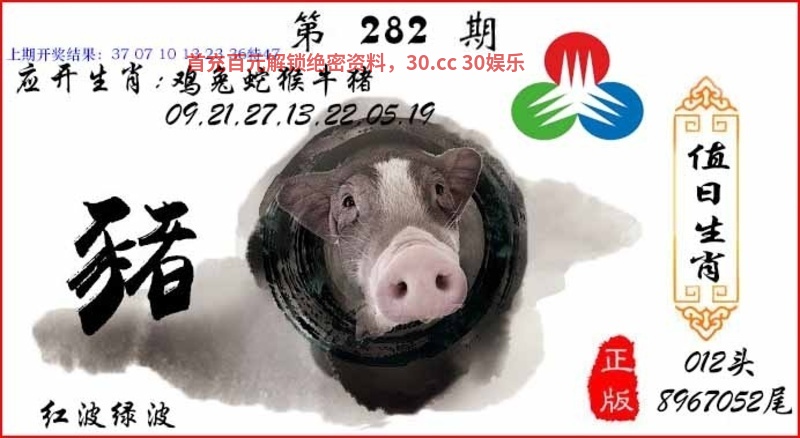 282期:九肖【猪马兔龙狗鸡虎猴】开:牛41中